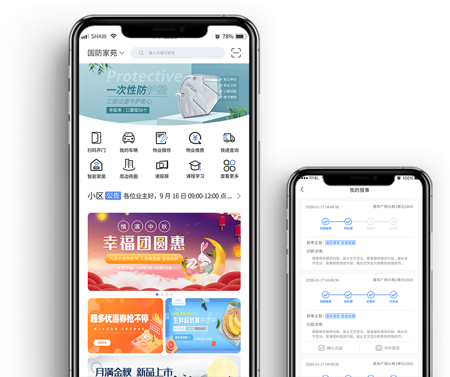 智慧社區生活平臺是連接物業、 居民、商家、便民資源于一體的聚合服務平臺, 以物業管理、硬件整合、社區O2O、鄰里社交、 公共服務等5大維度;APP+小程序+微信公眾號 +PC端4類終端深入各類應用場景,打造智慧社區生活。